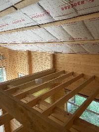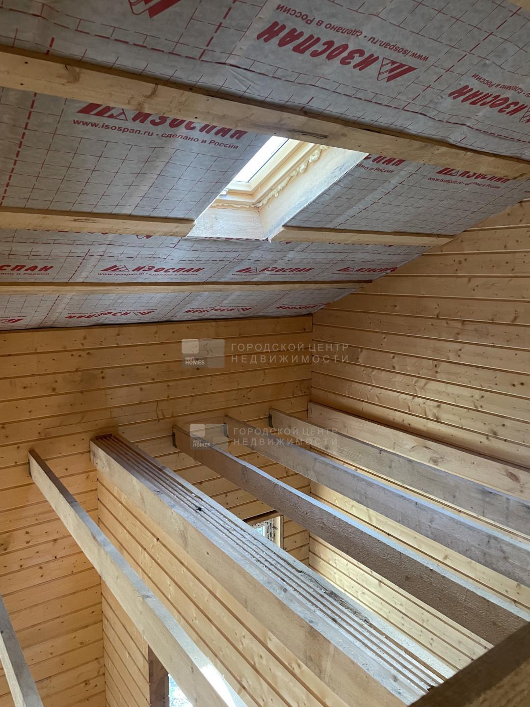 Клееный брус, бетонный монолитный фундамент ,крыша гибкая черепица, мягкая кровля, панорамные окна, ламинированные стеклопакеты, мансардные окна, широкая двойная входная дверь.