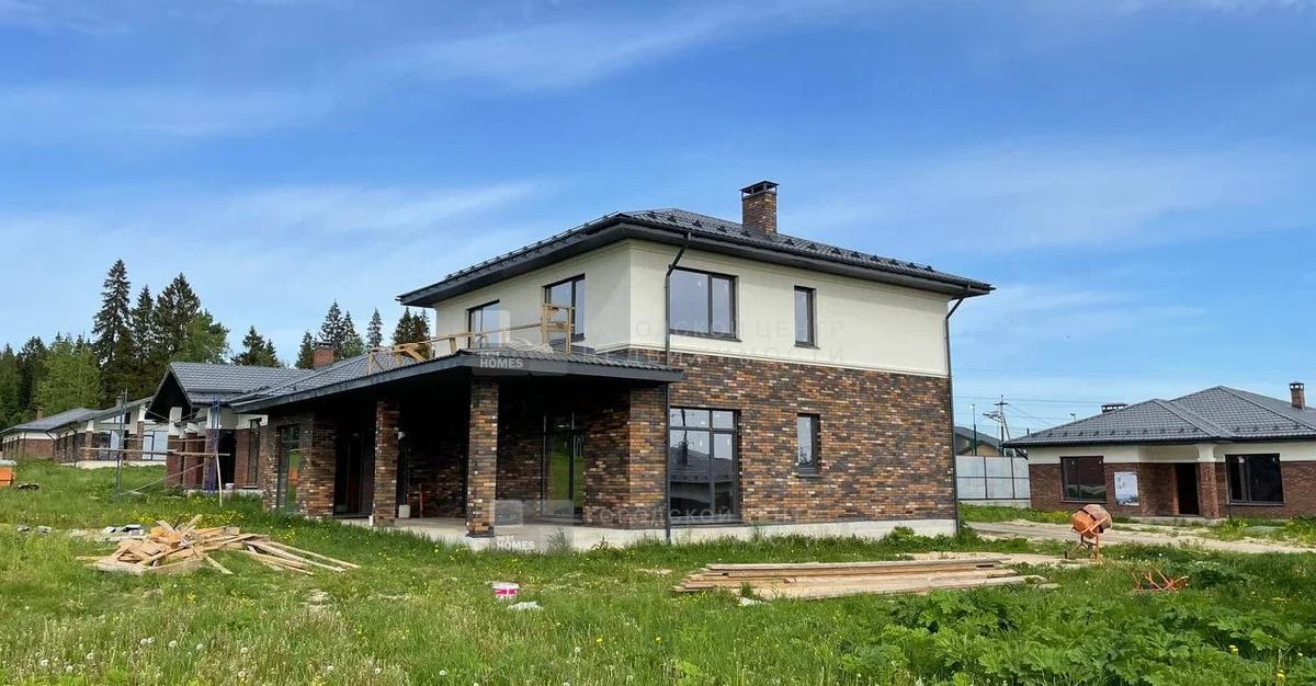 Дома продаются в состоянии "теплый контур". Это дает возможность создать жилое пространство полностью под себя в соответствии со своими предпочтениями. Также вы получаете выложенную брусчаткой площадку под две машины и выполненный в едином стиле металлический внутри поселковый забор по фасаду дома.