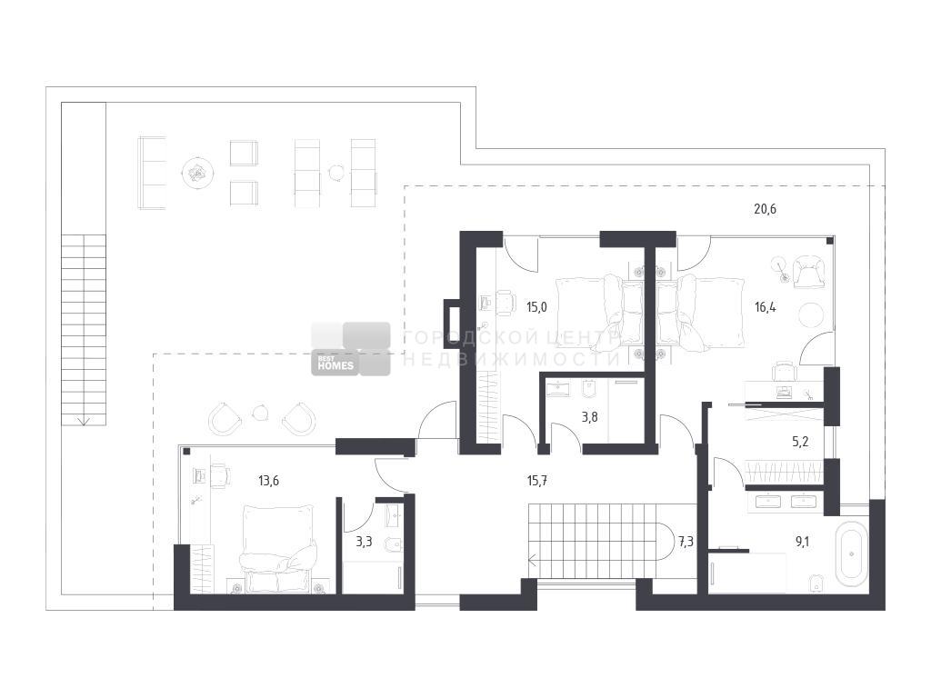 Панорамная релакс-зона в гостиной со вторым светом, камином и выходом на уютную террасу – прекрасное место для отдыха и вдохновения. Тектоничное и устойчивое формообразование, вдохновленное современной архитектурой, естественными материалами и переосмыслением стиля шале. Уютные балконы обеспечат дополнительное пространство для отдыха на природе с повышенным комфортом.