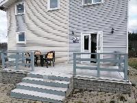 Материал дома очень теплый и современный : СИП панель. Снаружи обшит светлым сайдингом. Фундамент ж/б свайно-винтовой, обшит красивыми цокольными панелями.