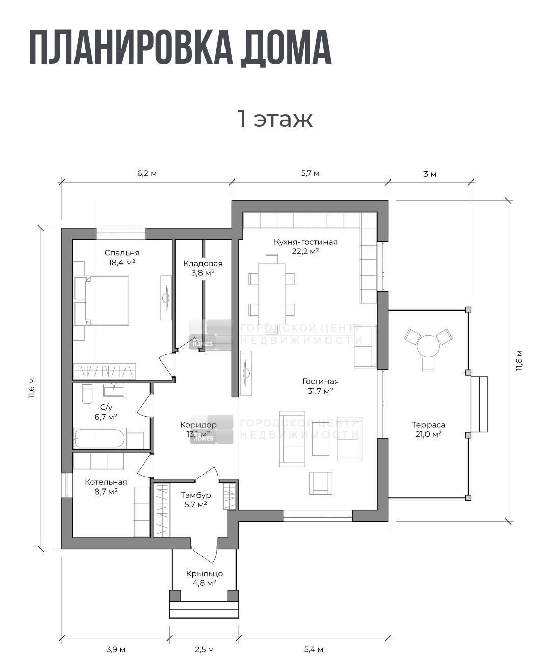 Общая площадь дома 222 кв.м