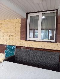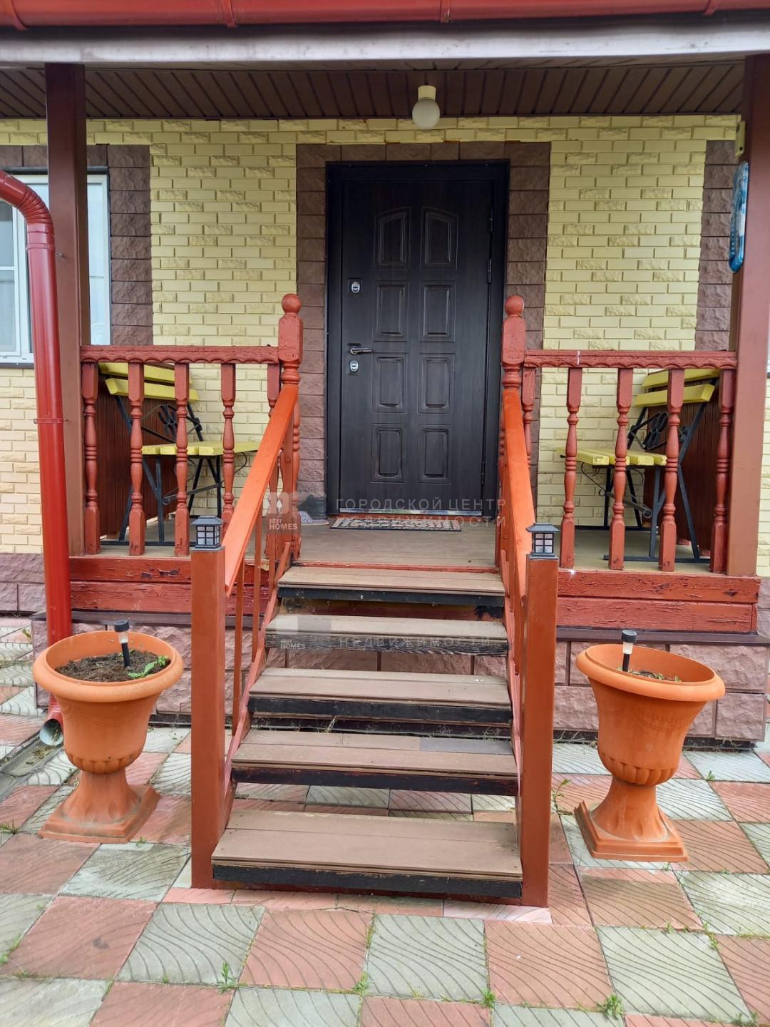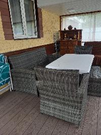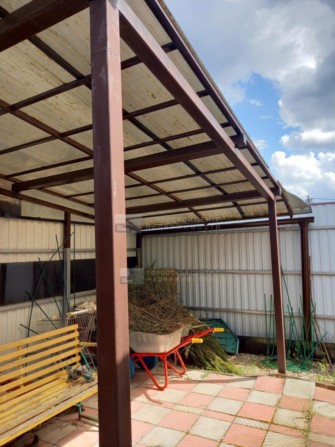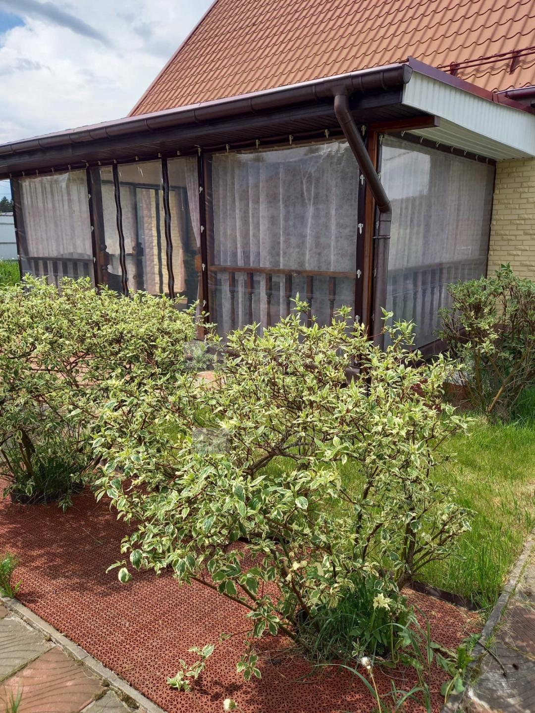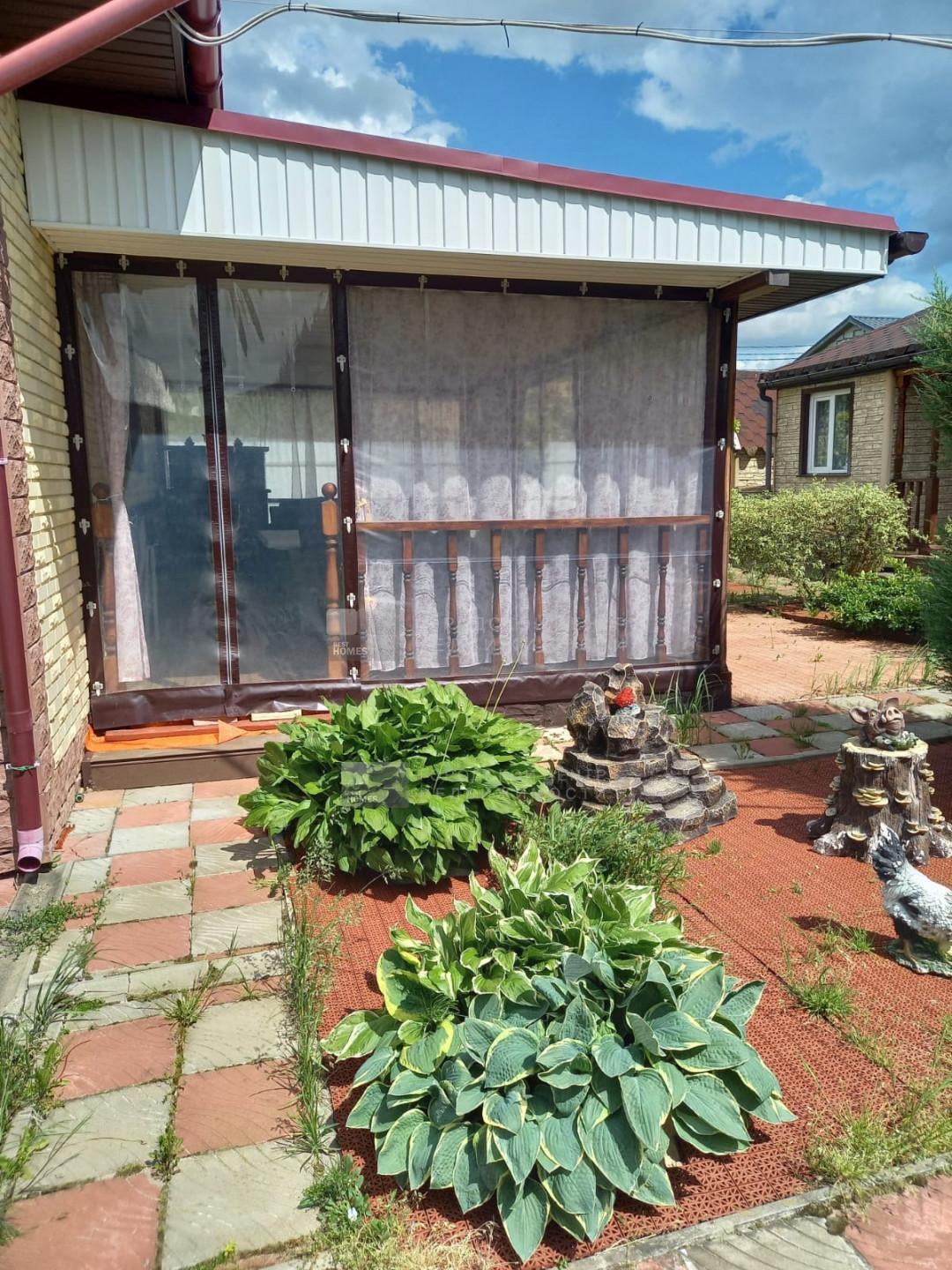 С тыльной стороны дома пристроена просторная крытая терраса 30 м2, закрытая гибким стеклом. Полы отделаны палубной доской.