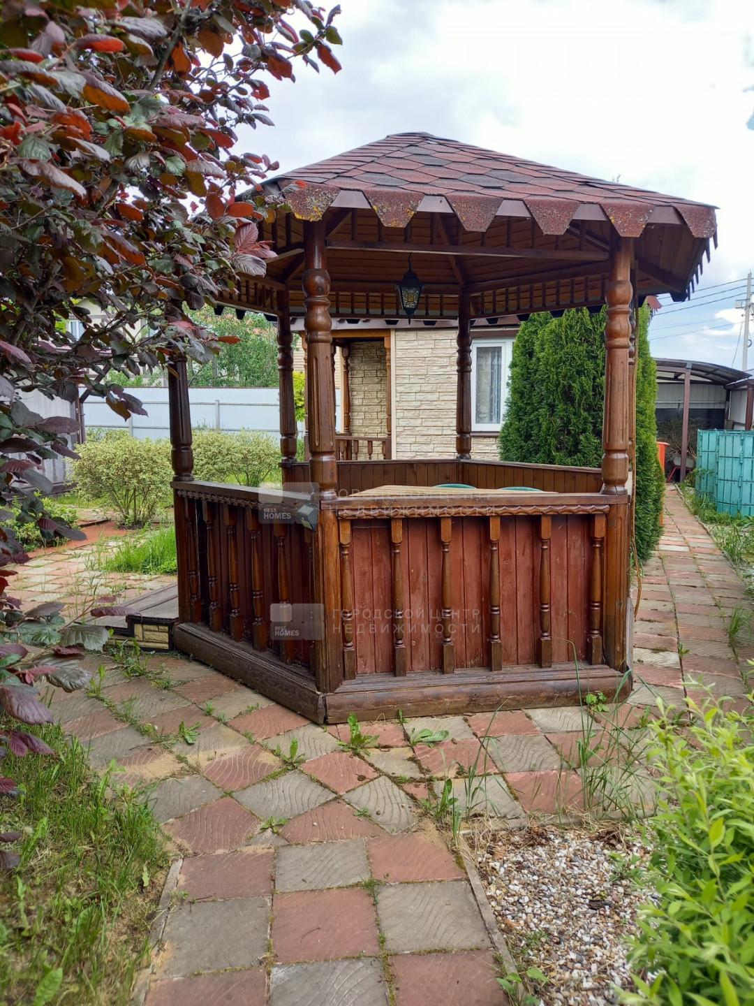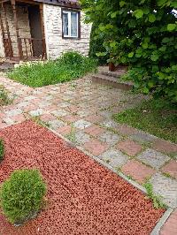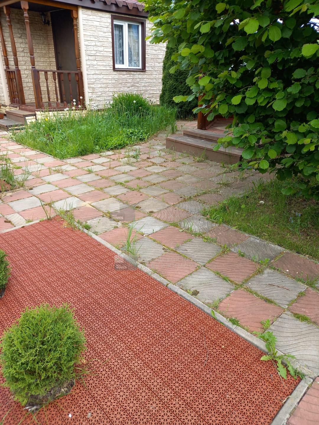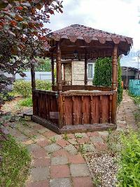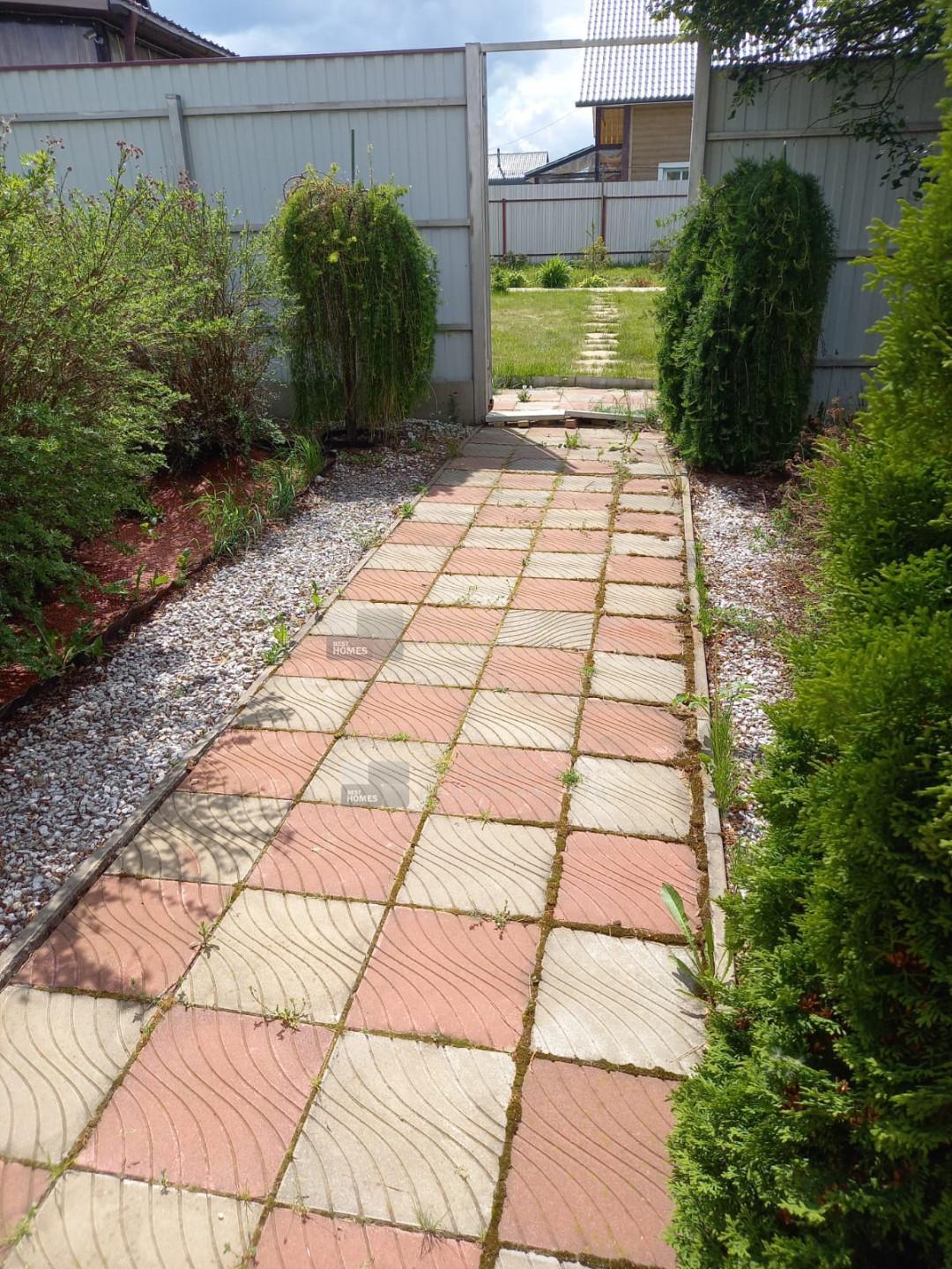 Участок буквально утопает в зелени. Заботливые руки хозяев создали красивый сад, сочетающий элементы ландшафтного дизайна, четкой геометрии клумб и дорожек, выложенных плиткой.