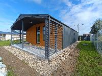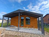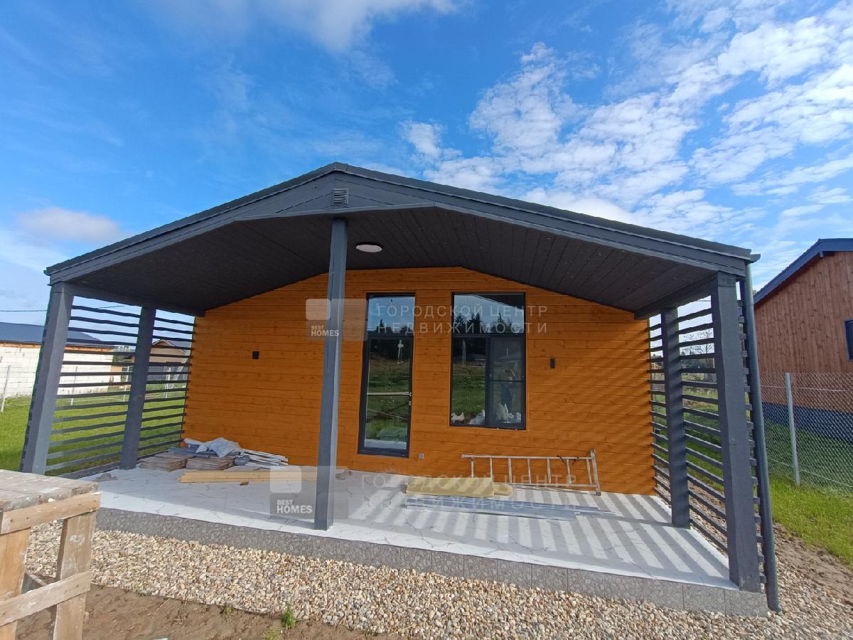 В доме просторная кухня - гостиная , три спальни, два сан -узла и большая крытая терраса.