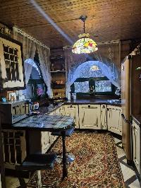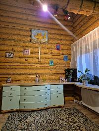 Четыре уютные спальни с балконами и высокими потолками, просторная кухня- гостиная, русская печка с лежанкой и банька с беседкой, терасса и навес для авто.
