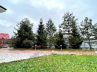 Ухоженный участок 8 соток с английским газоном и взрослыми хвойниками. Огорожен высоким сплошным забором, въезд на деревенскую улочку через шлагбаум, а на участок - автоматические ворота, открывающиеся с пульта.