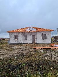 Дом площадью 120 кв.м состоит из 4-х жилых комнат и веранды. Готов под чистовую отделку (готовность 95%) . Стены выполнены из 300-го пеноблока, снаружи утепленного 50-й минватой и обшитого декоративным пластиком "под кирпич", внутри полностью оштукатурены. Потолок утеплен 20-ой минватой. Установлены пластиковые окна и дверь для выхода на веранду Rexau.