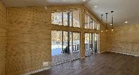 Внутри: имитация бруса, ламинат, натяжной потолок.