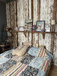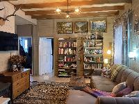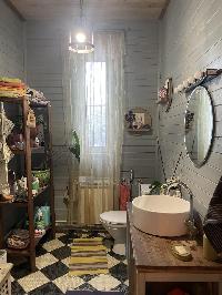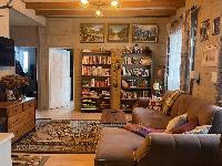 В доме: на 1 этаже - прихожая, 2 сан.узла, кухня-столовая, гостинная с камином, мастерская, спальня хозяйская, гостевая спальня