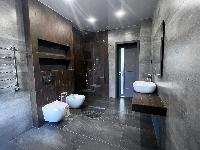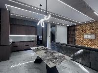 В доме высокие потолки, что значительно расширяет пространство.