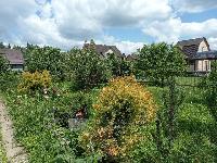 Участок 8 соток распланирован ландшафтным дизайнером, ухожен- высажено много цветов -розы, пионы, лилии, декоративные хвойные растения, плодоносящие фруктовые деревья из Тимирязевского сада.